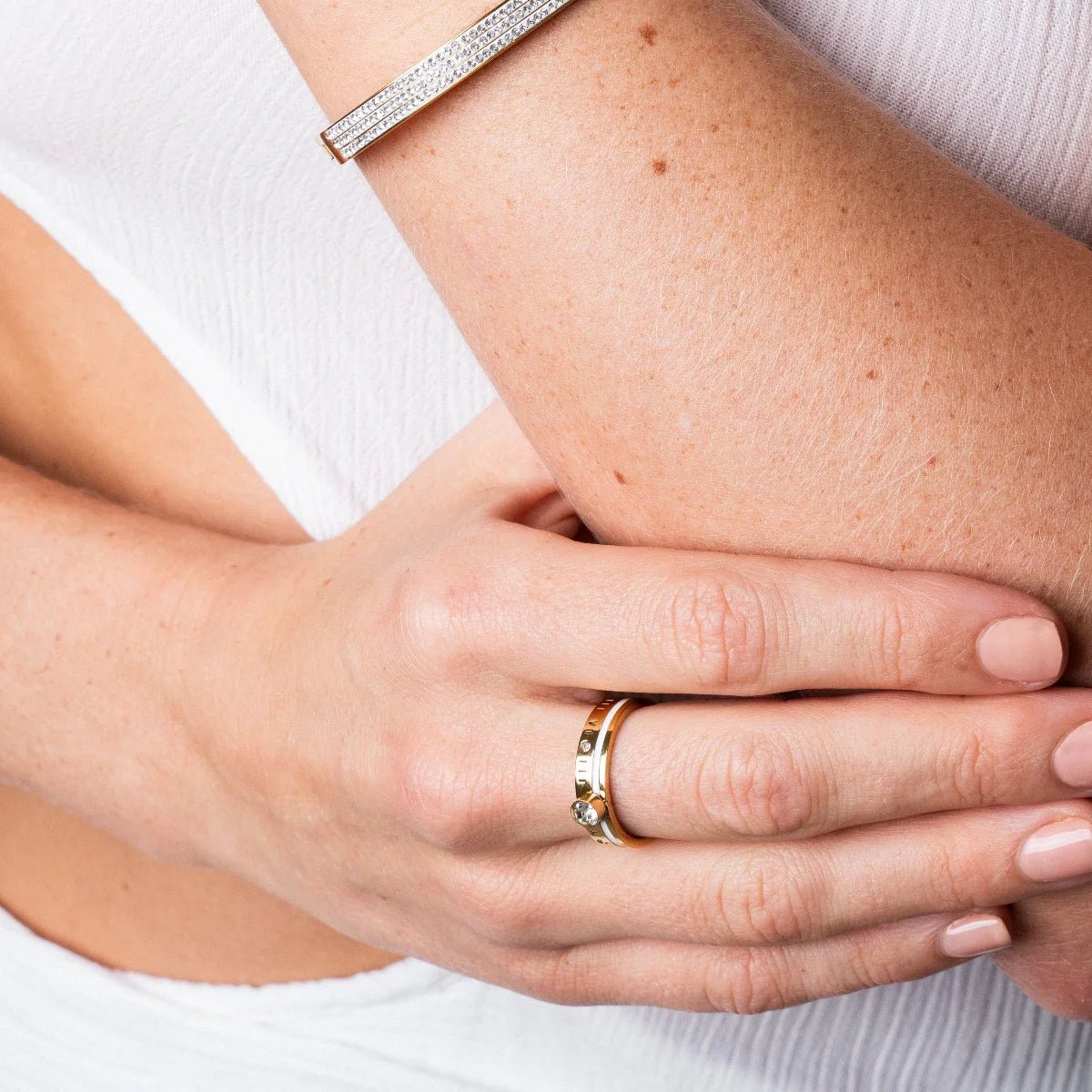 Experimente la tranquilidad de poseer una joya concebida para perdurar. La calidad Murano de este anillo va más allá de la estética; asegura una garantía de por vida, una promesa de resistencia y excelencia. Gracias a su construcción en acero inoxidable premium y su triple baño de Oro 18k, este anillo es excepcionalmente resistente al agua, al calor y al sudor. Olvídese de las preocupaciones por el desgaste, el oscurecimiento o la oxidación, ya que este material avanzado mantiene su lustre sin manchar la piel, permitiéndole lucir su brillo sin interrupciones y con total confianza en cualquier ocasión, desde el día a día hasta eventos especiales.